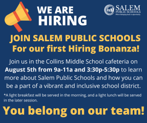 A Saturday summer newsletter! We have some information about the first discussion group of our summer reading series, our hiring bonanza, and a $263,585 grant for the Salem High School…