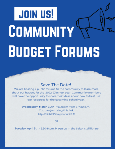 Salem Public Schools is hosting 2 public forums for the community to learn more about our budget for the 2022-23 school year. Come share your ideas about how to best…