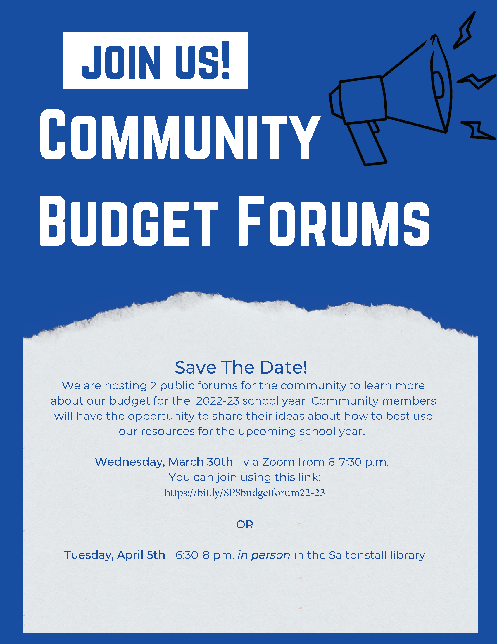 Salem Public Schools is hosting 2 public forums for the community to learn more about our budget for the 2022-23 school year.