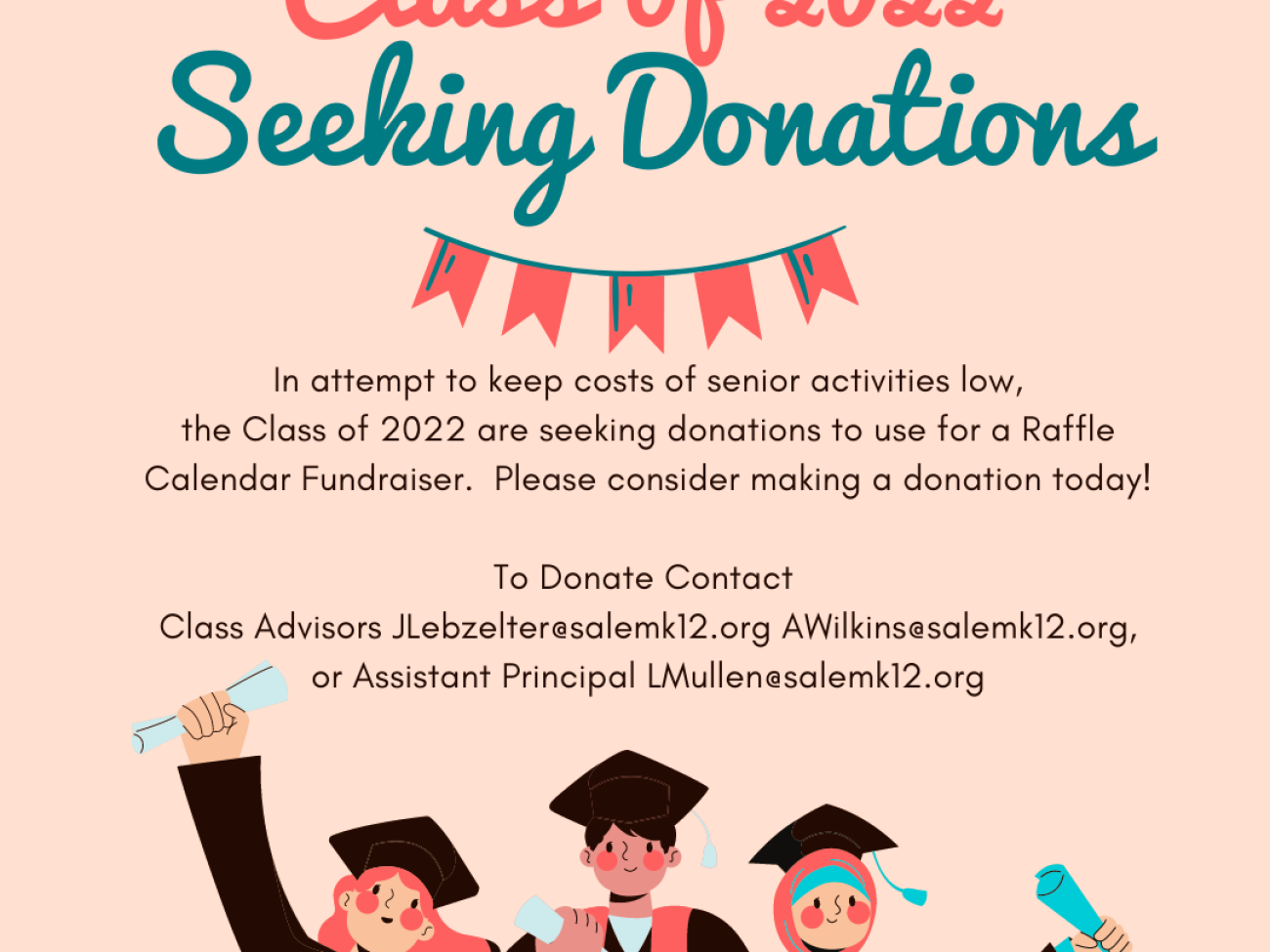 Dear SPS staff, In an attempt to keep costs low for senior activities, The class of 2022 is seeking donations for a calendar fundraiser. Cash...