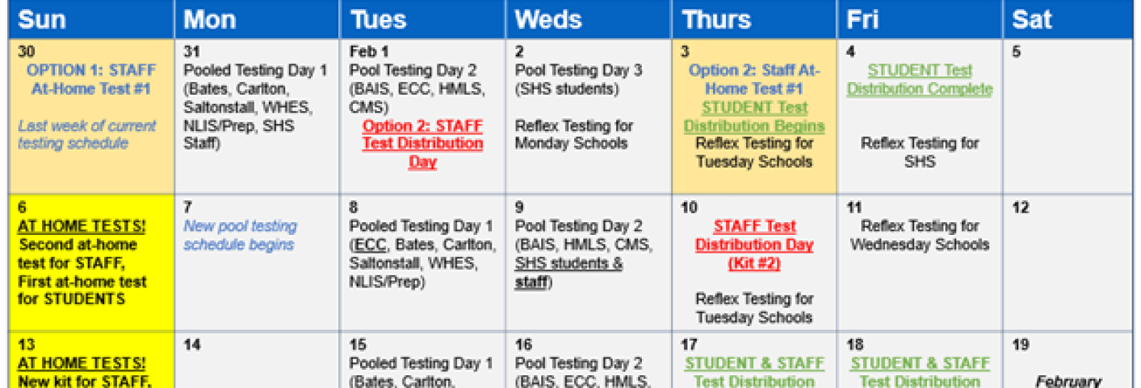 The opportunity to sign up for this week’s distribution of tests has now passed. We will share an additional opportunity to sign up for the next distribution before February break.