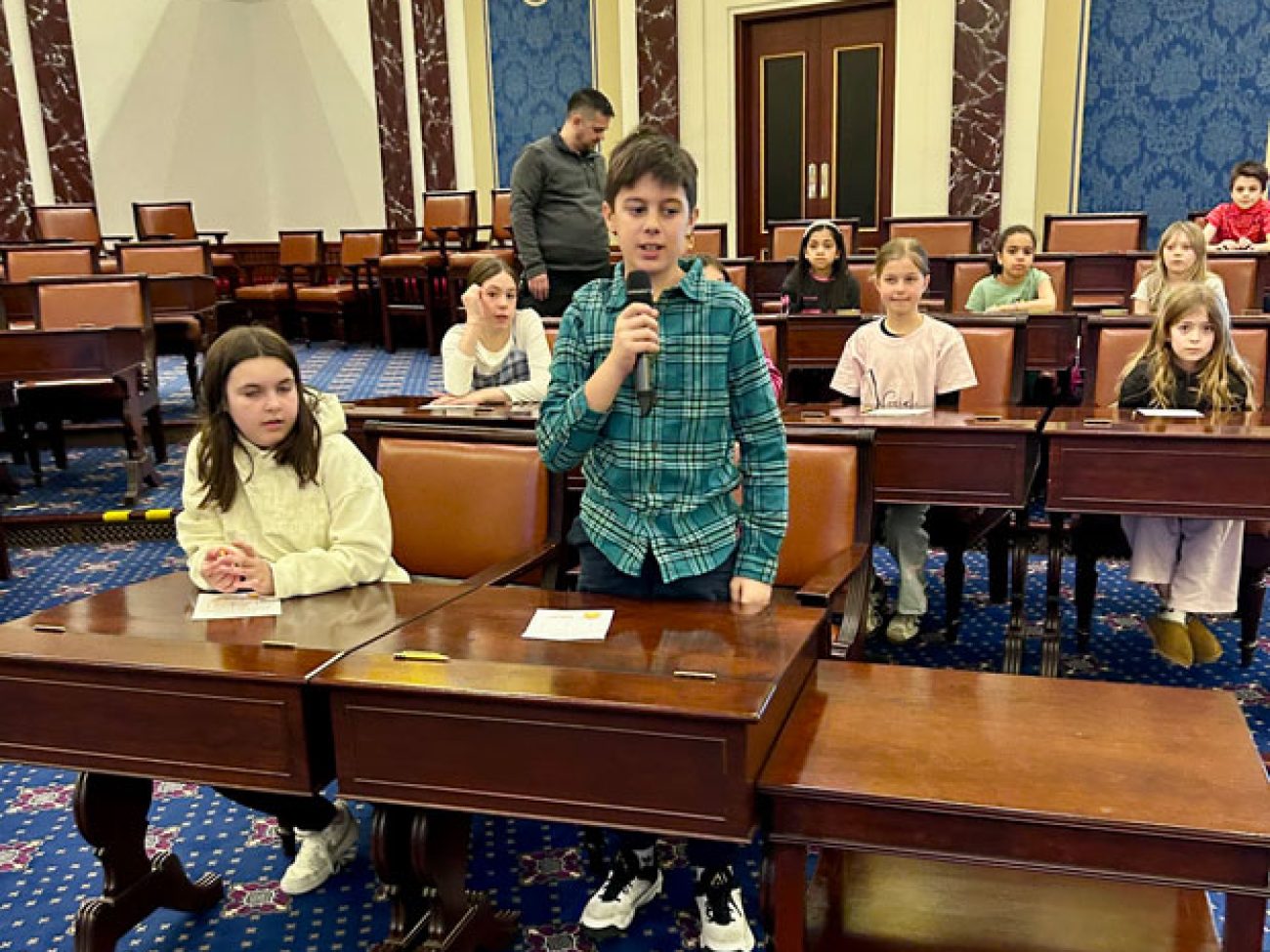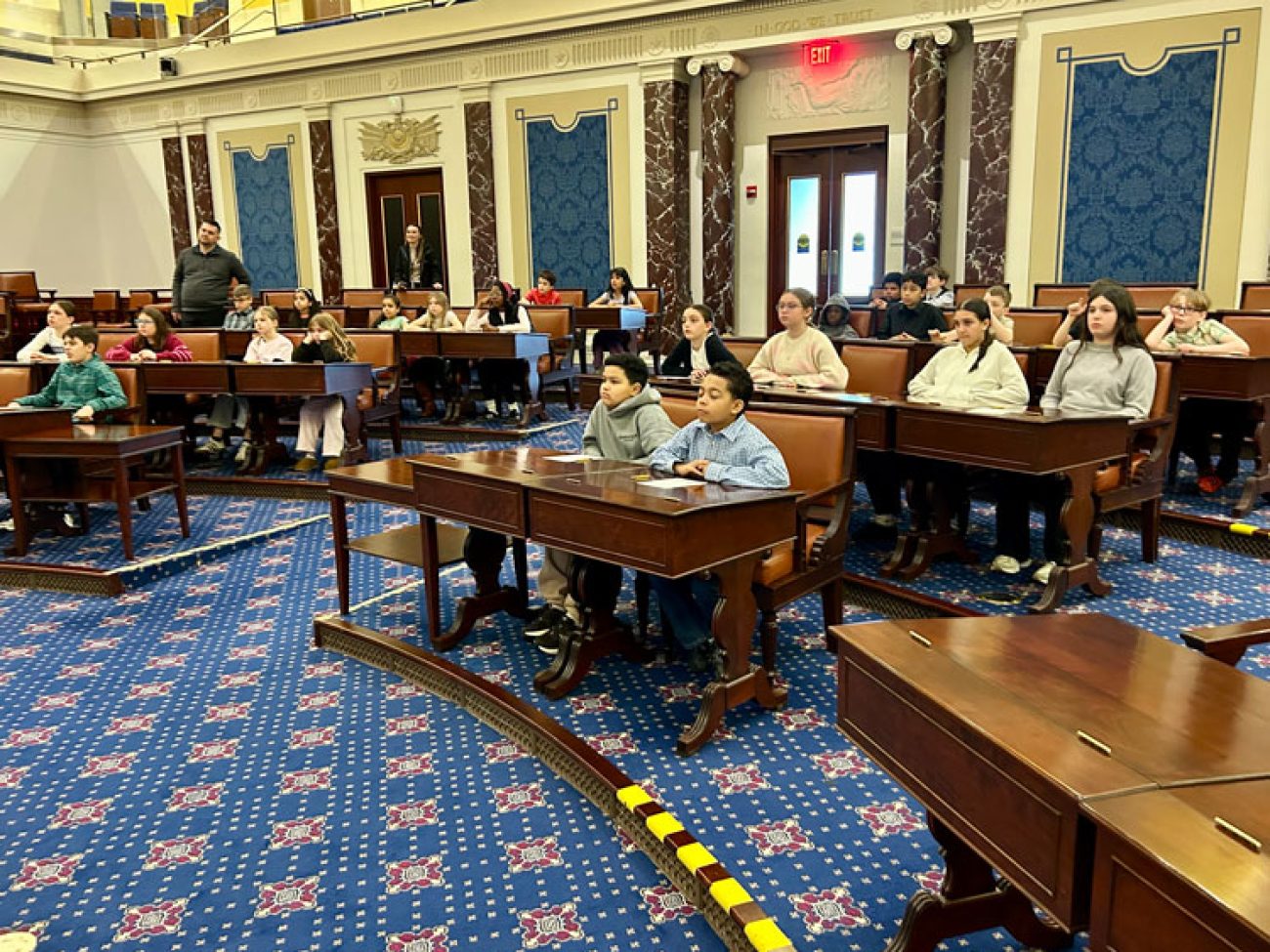 Upon arrival, WHES students were given a tour of the replica U.S. Senate Chambers and all students were assigned a seat, each seat representing a single U.S. state.